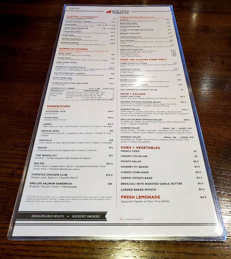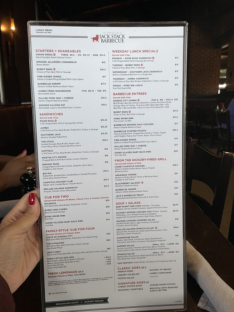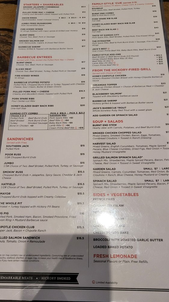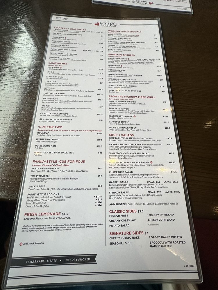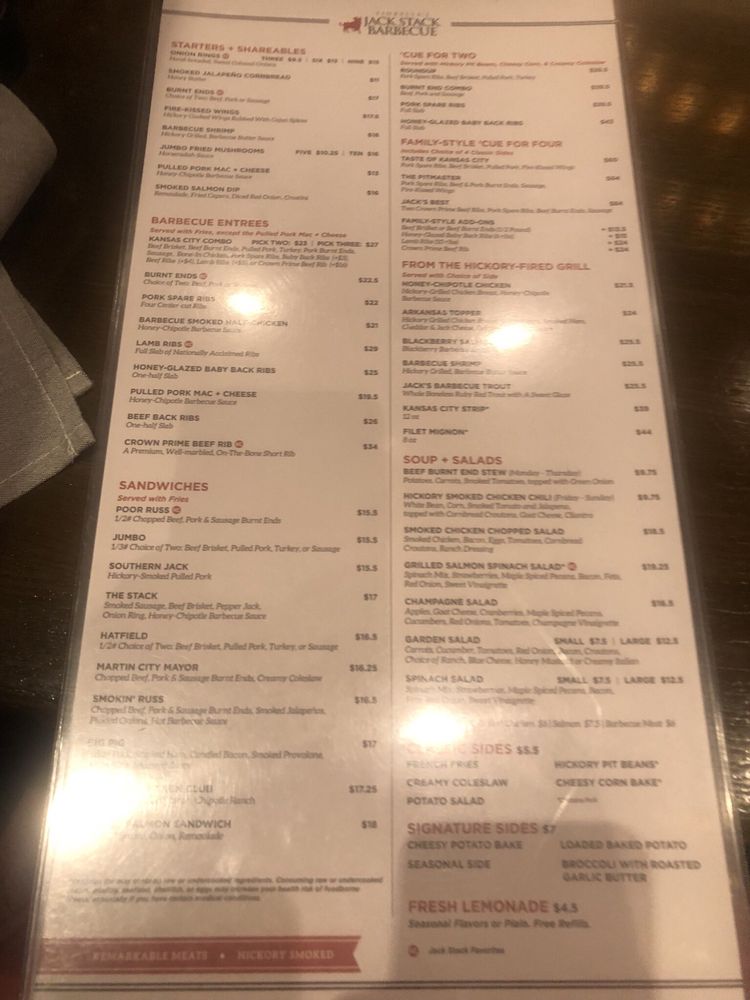 Welcome to Jack Stack Barbecue- Lee's Summit! This restaurant offers a wide range of amenities including delivery, takeout, reservations, and wheelchair accessibility. Enjoy a variety of handcrafted cocktails like the Smoked Apple Manhattan or Cucumber Jalapeño Margarita. Indulge in their famous Boulevard on Tap beers while savoring delicious dishes such as ribs, scalloped potatoes, and BBQ turkey.